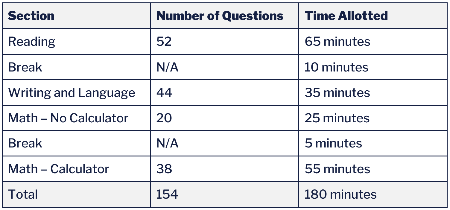 Before you begin, familiarize yourself with the timing for each section of the SAT: